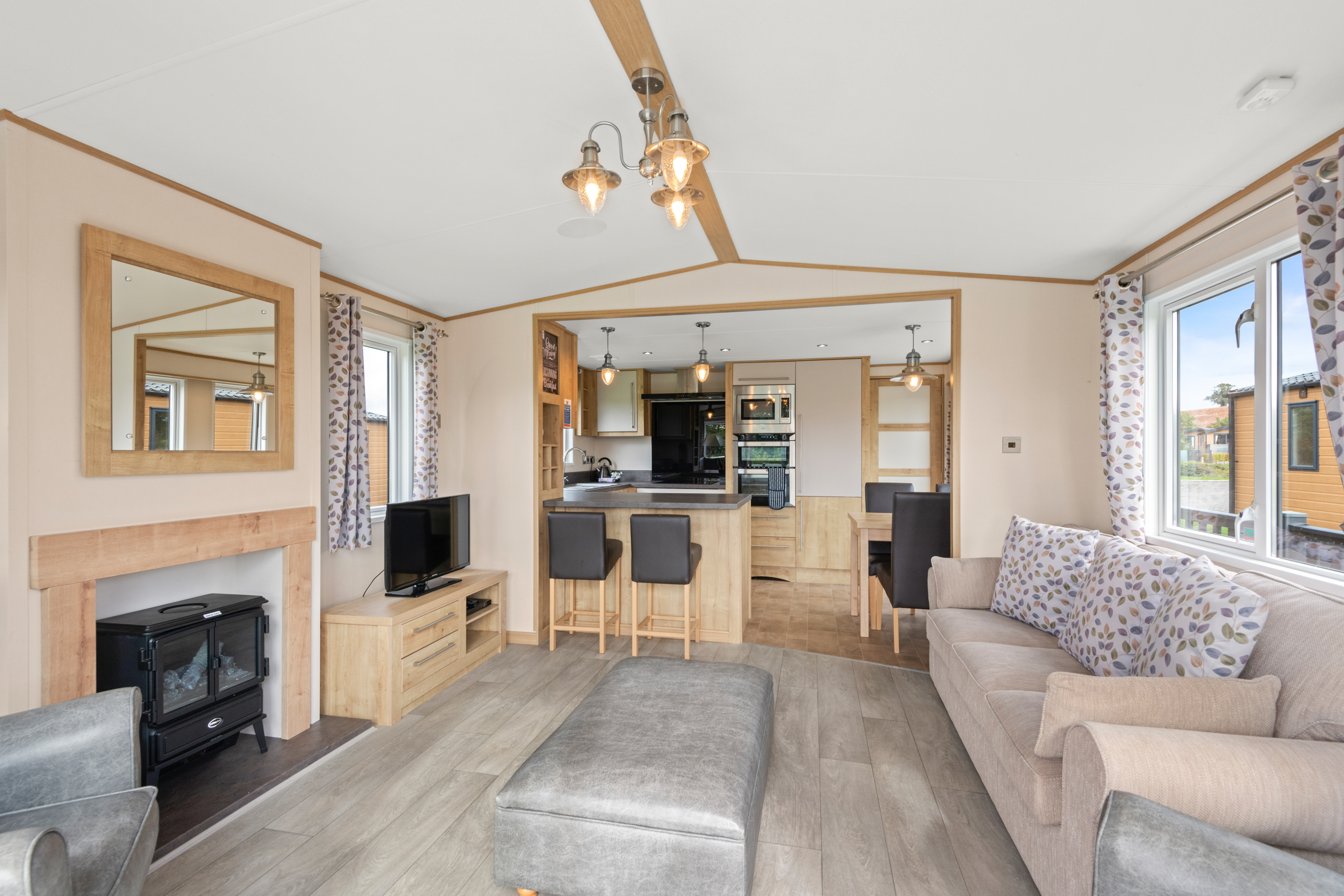 With a pull out sofa bed in the open plan living room, the Meadow View Plus is the ideal accommodation for the whole family.